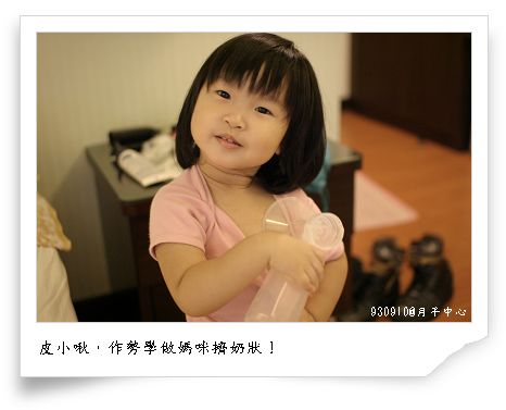 好啦,因為大人的這種說法,小啾也自行張羅出她的邏輯:「小寶寶沒有牙齒→喝ㄋㄟㄋㄟ,我有牙齒→吃飯」,