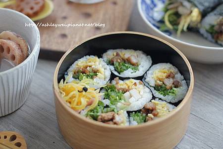徒手(來不及找出壽司捲簾)壓實圓捲成筒狀,