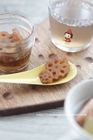 以及適量的冰糖與黑糖蜜,以小火慢滾煮稠糖汁,過程中翻轉蓮藕片讓其沾裹均勻糖汁,